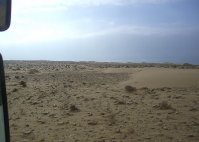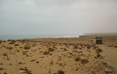 Wir verlassen die Flussmündung jetzt in Richtung Süden und werden oberhalb des Plage Blanche bis Tan-Tan fahren. Ein bisschen was haben wir also noch vor uns. Ausserdem soll die Piste ab hier oft sehr sandig sein und wir wissen nicht, wie hoch die Sandflächen vom starken Wind aufgetürmt worden sind, so dass wir mit einer längeren Fahrtzeit rechnen. Nachdem wir die beiden Franzosen Emiline und Olivier ja hier bei Mustafa wiedergetroffen haben, entscheiden sie sich dafür, sich lieber uns anzuschließen, da auch die beiden nicht wissen, wie gut oder schlecht Ihr Fahrzeug den Sand meistert. Sollte man sich wirklich eingraben, ist es ntürlich ganz schön, wenn man durch andere herausgezogen werden kann. Also geht es jetzt mit 3 Fahrzeugen wieiter.