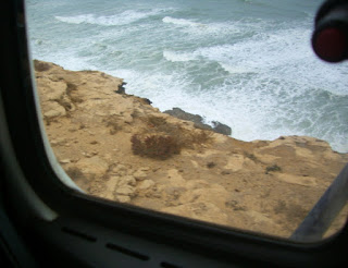 Gelegentlich führt die sandig-steinige Piste nah an die Steilküste heran. Ziemlich nah!