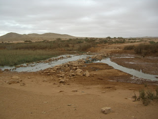 Nachdem wir am nächsten Morgen die unglaublichen Ausmaße der Flussmündung von hier oben bewundert haben, machen auch wir uns auf die Fahrt nach Tan.-Tan. So verlassen wir den Atlantik und folgen dem Fluss in Landesinnere. Erst weit im Inland besteht die Möglichkeit, den Draa südwärts zu überqueren.