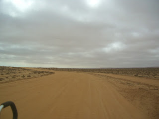 Im übrigen begegnet uns hier zum ersten Mal nach über 2 Tagen ein anderes Fahrzeug. Ein Jeep kommtuns entgegen und hüllt uns in eine Wolke aus mehlig-feinem Sand. Die Abstände, in denen einem hier andere Autos begegnen, ist für deutsche Autobahngeschädigte wie uns…
