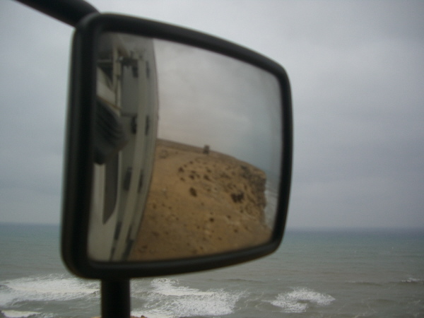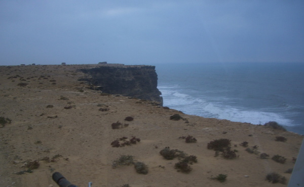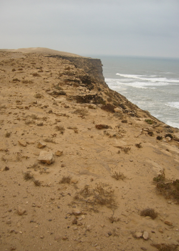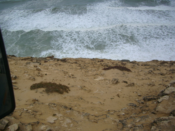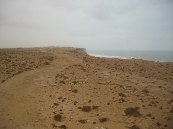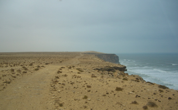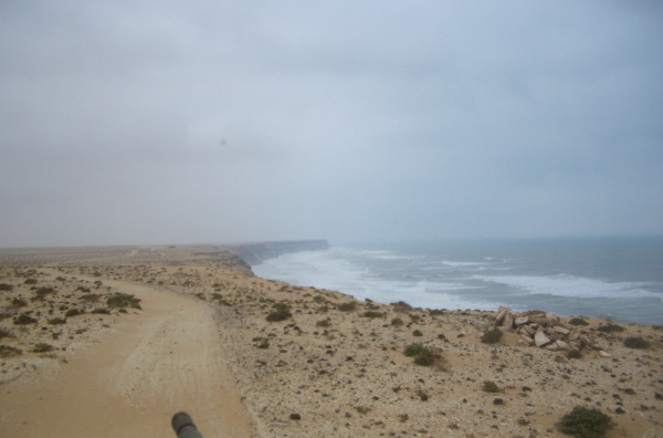 Gelegentlich führt die sandig-steinige Piste nah an die Steilküste heran. Ziemlich nah!