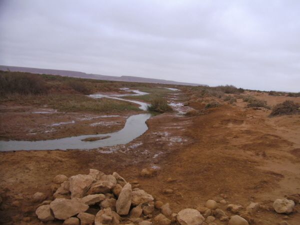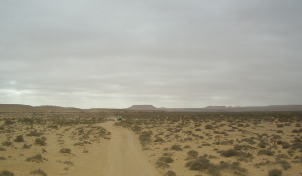 Auf der Südseite verlässt man bald das hier flach ansteigende Flusstal und die Piste wird wieder härter und vor allem breit wie eine Autobahn. Hier kann man ungeahnte Geschwindigkeit aufnehmen und die letzten Kilometer bis zu der Garnisionstadt Tan-Tan sind schnell zurückgelegt.