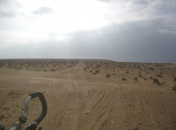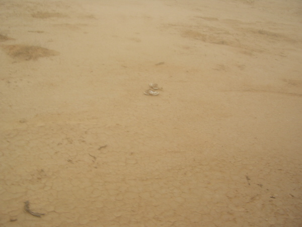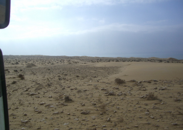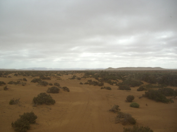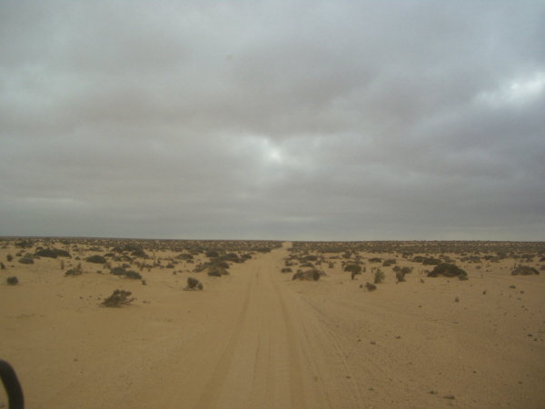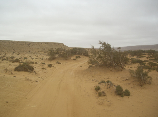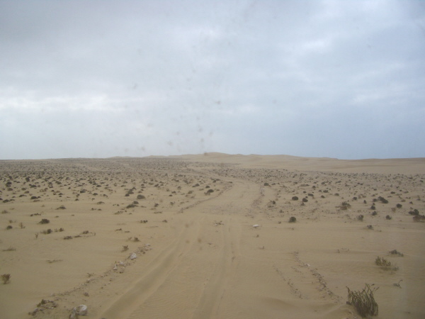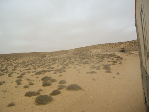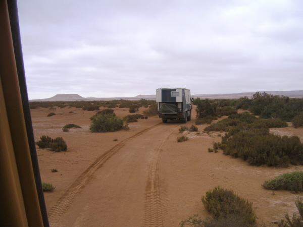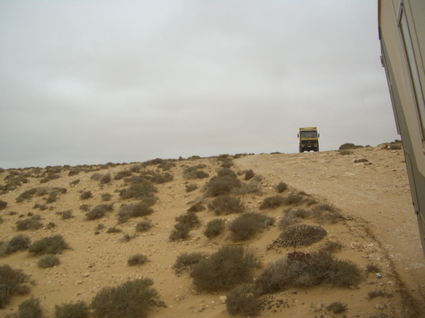 Im übrigen begegnet uns hier zum ersten Mal nach über 2 Tagen ein anderes Fahrzeug. Ein Jeep kommtuns entgegen und hüllt uns in eine Wolke aus mehlig-feinem Sand. Die Abstände, in denen einem hier andere Autos begegnen, ist für deutsche Autobahngeschädigte wie uns…