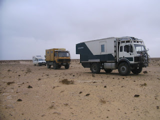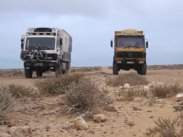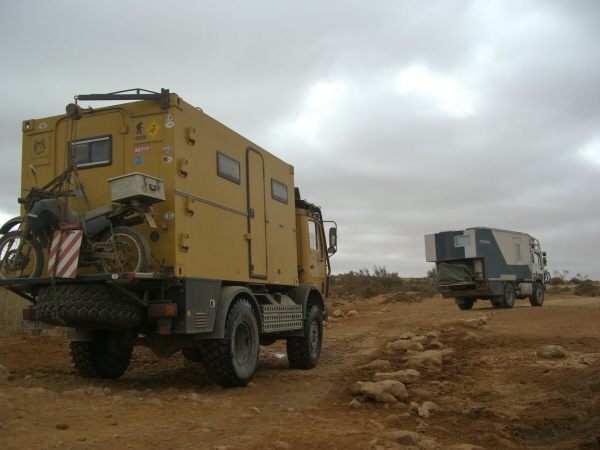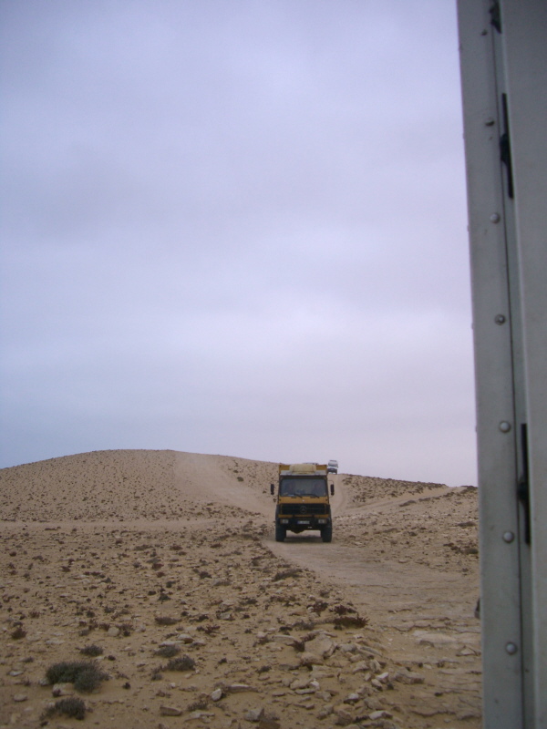Endlich habe ich Zeit Euren Reisebericht weiterzuverfolgen. Wie ich sehe, habt Ihr Anschluss mit anderen Reisenden gefunden und seit zusammen mit ihnen auf dieser abenteuerlichen Fahrt durch die Wueste gefahren. Mir ist es nun ein Raetsel, wieso sind da am Anfang drei Fahrzeuge und nachdem das franzoesische Paar Euch verliess. wer waren die Reisenden im zweiten Wuestemmobil, die dann noch mit Euch weiterreisten?