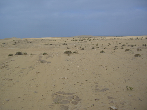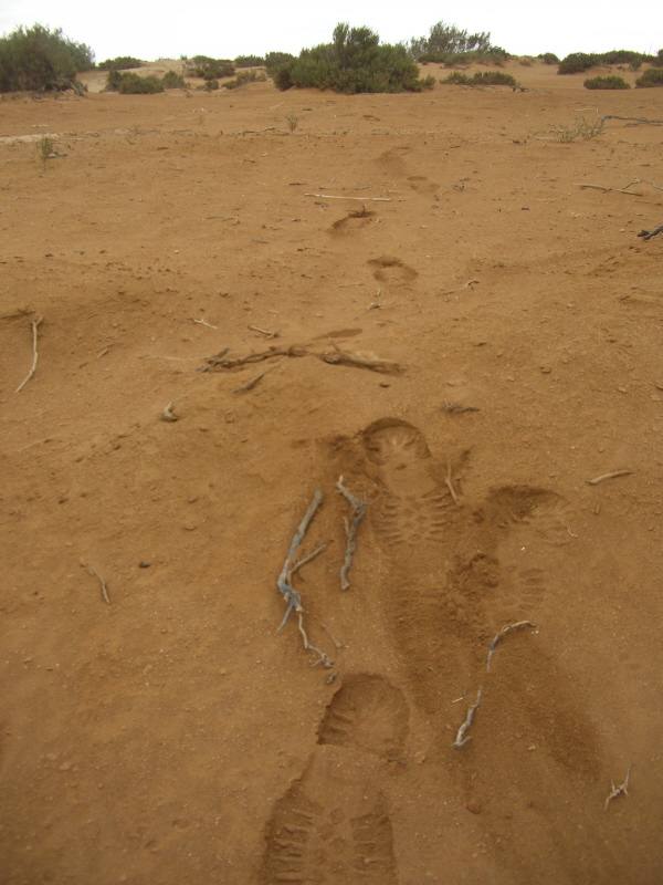 Die Mini-Sanddünen, die hinter sogar hinter den kleinen Büschen anwachsen, haben aufgrund des heftigen Windes eine beachtliche Länge erreicht. Morgen oder übermorgen weht der Wind wieder aus einer anderen Richtung und die Dünen wechseln ebenfalls ihre Lage. So sieht das Ganze jeden Tag ein wenig anders aus.