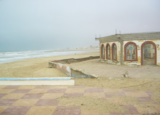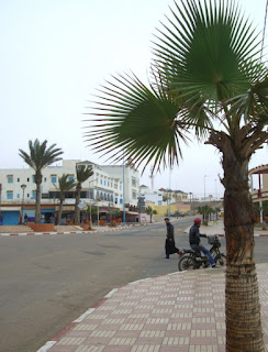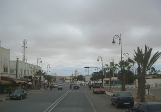 Auch hier nur eine Hauptstraße – nur NOCH kürzer als in Tan-Tan – und diverse Seitenstraßen drumherum, von denen viele mit einer dicken Sandschicht bedeckt sind – soweit sie denn asphaltiert sind. Vielleicht aufgrund des trüben Wetters wirkt das Ganze reichlich verschlafen und an einigen Stellen auch ein bisschen trostlos – obwohl es bei der Lage an den tollen Stränden hier ja eigentlich ein schöner Urlaubsort sein könnte. Es scheinen sich aber hierher nur wenige Touristen zu verirren, was vielleicht auch mit der Nähe zum umstrittenen Gebiet der West-Sahara zu erklären ist. Selbst die sonst überall gegenwärtigen Franzosen-Wohnmobile sind kaum zu sehen.