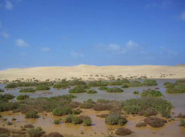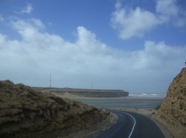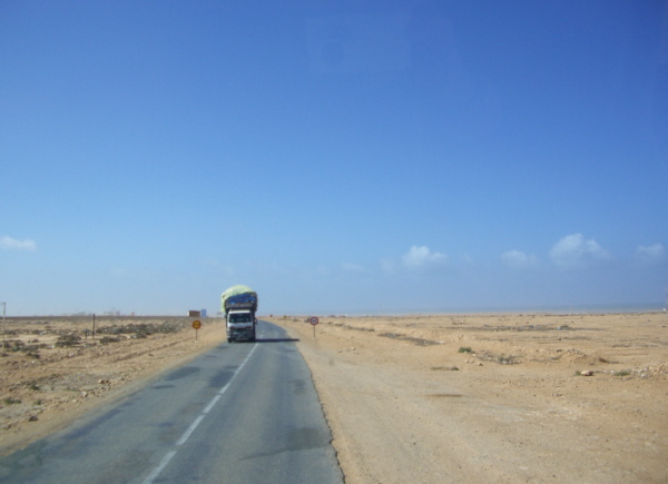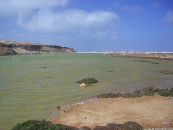 Ralph und Birgit haben sich kurzfristig entschlossen, mit uns mitzufahren – eigentlich wollten sie nicht so weit nach Süden, aber auch für sie ist der Dieselpreis natürlich verlockend. So fahren wir an der Küste entlang – die einzige Verbindung nach Süden, die N1, ist meist schnurgerade und wird in unregelmäßigen Abständen von Ouedduchquerungen unterbrochen. Die Straße führt dann regelmäßig in die Flusstäler hinunter und auf der anderen Seite wieder hinauf. So durchfährt man die Täler in ihrer gesamten Breite und hat von dort immer wieder einen schönen Blick auf die Flussmündungen und den Atlantik.