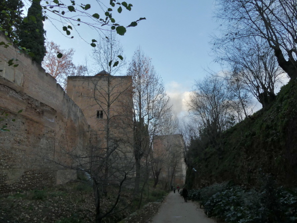 Wir wollen mit unserem Gefährt nicht unbedingt mitten durch die Stadt und folgen daher dem Weg der vermutlich meisten Besucher: in einem großen Bogen um die Stadt herum bis zu den Hügeln, auf denen die Alhambra tront. Hier fahren wir gleich auf den für Caravans vorgehesehen Parkplatz. 29 € für 24 Stunden ist zwar ein reichlich gepfefferter Preis aber wir möchten hier nicht irgendwelche Anliegerstraßen zuparken und außerdem wollen wir die alte Burganlage zu Fuß erreichen können.