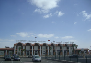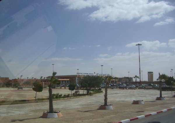 Unser Ziel hier ist nicht die Stadt selbst, sondern der Flughafen von Laayoune, denn an den internationalen Flughäfen und Seehäfen kann man in Marokko Zollformalitäten erledigen. Und genau das wollen wir hier: bei der Einreise bekommt man in Marokko ein 90-Tage –Visum; Fahrzeuge bekommen so was wie eine Aufenthaltsengenehmigung vom Zoll. Diese gilt normalerweise ein halbes Jahr. Normalerweise. Da wir ja bei unserer Einreise den totalen Computerabsturz in TangerMed erleben durften, wurden für unsere Fahrzeuge (LKW und Moped) jeweils nur zwei Monate Zollgenehmigung handschriftlich von den Beamten vermerkt.  Danach müssen die Fahrzeuge das Land verlassen.Da wir mit zwei Monaten Aufenthalt in Marokko sicher nicht hinkommen und wir auch nicht nach Mauretanien ausreisen und wieder einreisen wollen, müssen wir halt hier am Flughafen eine Verlängerung beantragen.