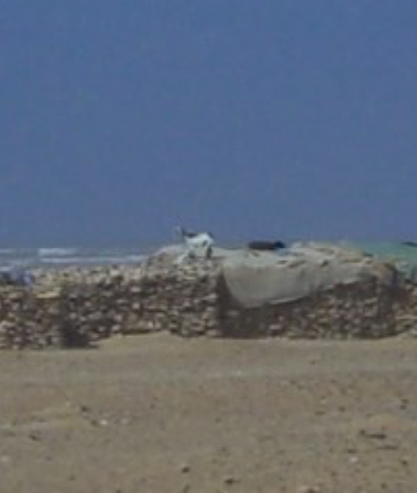 Bis auf die paar Fischerhütten sind auf der ganzen Fahrt keinerlei Gebäude zu sehen gewesen. Ob dieses hier einem modernen Diogenes (ja – der in der Tonne) als Behausung dient, oder ob das Teil nur irgendwie im Wüstensand vergessen wurde, können wir nicht feststellen. Sieht für uns jedenfalls aus, wie ein Teil von einem Flugzeugrumpf. Wie kommt das Ding an den Straßenrand??