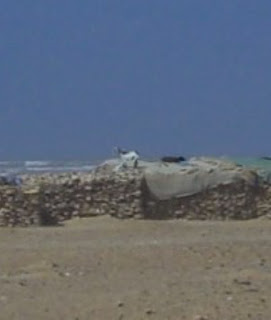 Die Fischerhütten am Strand sehen zwar malerisch aus, werden aber ziemlich gesandstahlt – den Ziegen ist´s in ihrer normalen Höhe jedenfalls zu sandig geworden und zwei von ihnen haben sich schon mal auf´s Dach geflüchtet. Ist sicher deutlich besser dort oben.