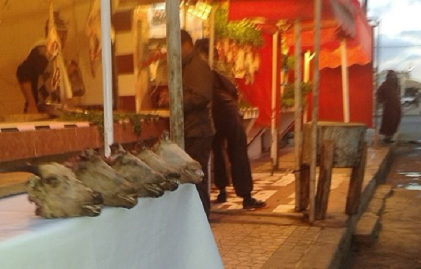 Auf dem Weg zu den Autos kaufen wir noch ein bißchen Gemüse – auf die angebotenen Ziegenköpfe verzichten wir heute mal…
