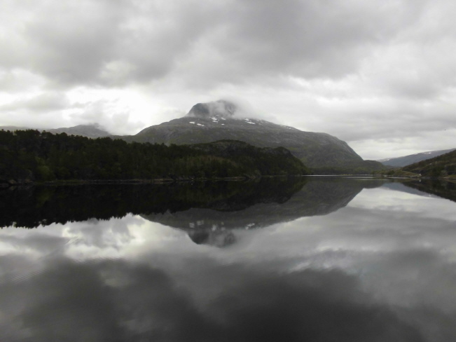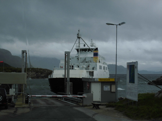 Nun ist es Zeit, unseren schönen Stellplatz zu verlassen und es geht weiter, der Fv 17 folgend, die „Helgelandskysten“ entlang. Die Strasse endet irgendwann an einem der unzähligen Sunde Nord-Norwegens und ist ab hier nur noch durch eine Fährpassage weiter zu benutzen. So fahren wir nach Holm, um von dort aus mit der Fähre nach Vennesund überzusetzen. Immerhin 293,- NOK (ca.30,-€) für die 3,5 Km lange Fährstrecke Strecke.
