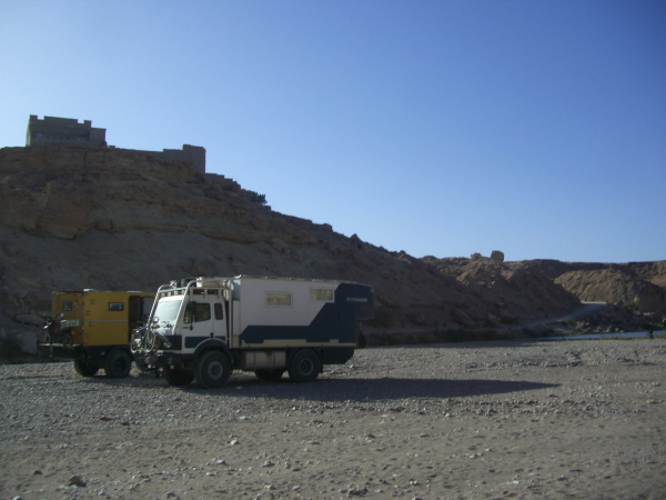 So beenden wir unseren Besuch in Tissint, verlassen den Ort ostwärts uns suchen uns irgendwo neben der Straße eine Pisteneinfahrt, die Richtung Berge führt. Dort finden wir nach kurzer Zeit einen freien Platz in weiter Landschaft. Viel besser als in jedem Dorf!!