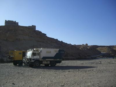 Ab Tata gibt es die Möglichkeit, schon gleich auf die Piste zu fahren, die unweit der algerischen Grenze über rund 200 Kilometer staubige Strecke nach M´hamid und in den Erg Chegega in den äußersten Osten Marokkos führt. Gunter, den wir bei den Blauen Steinen getroffen haben, erzählte uns jedoch, dass er für die erste Strecke unterwegs von einem Militärposten nach einer Erlaubnis gefragt wurde, die man in Tata erhalten soll. Wir überlegen, ob wir uns durchfragen, um die zuständige Stelle zu finden und uns die Erlaubnis zu besorgen, oder ob wir uns die Behördengänge sparen und noch rund 50 Kilometer weiter Richtung Osten auf der N12 nach Tissint fahren. Wir könnten dann erst ab Tissint die Piste nehmen, in der Hoffnung, dass uns ab dort niemand mehr nach einer Erlaubnis für die Befahrung fragt.