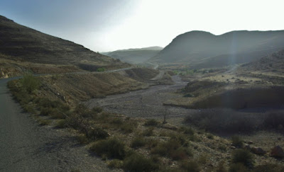 Eigentlich mehr zufällig entdecken wir links von uns ein tiefes und ziemlich breites Tal – wieder mal ein Fall von verborgenen Lanschaften: dieses Mal versteckt sich ein Flußbett, an der das Tal nach Norden abknickt. Dort gibt es ein an die Felskante gebautes Dorf