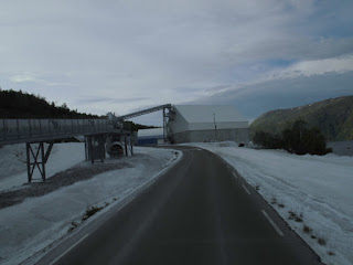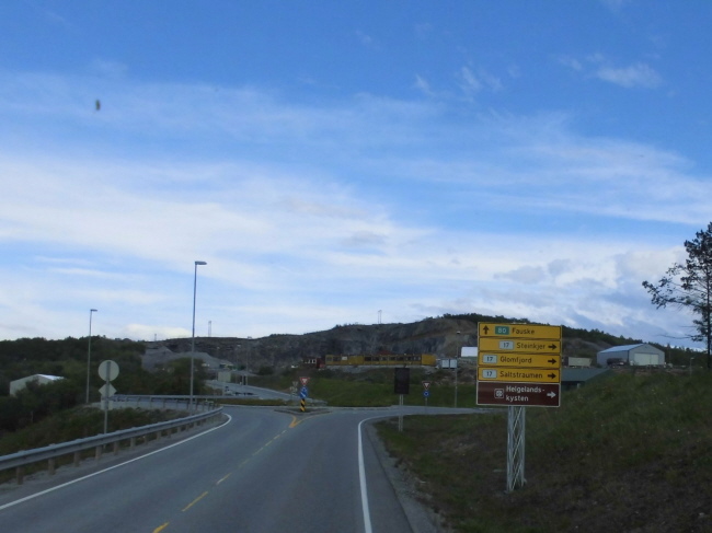 Hinter Fauske drängt es uns, eine der wenigen Gelegenheiten zu nutzen, die ohnehin nicht sehr befahrene E6 zu umgehen: Wir biegen auf die Fv 537 ab, um zu sehen, ob man auf ihr mit Hilfe einer Fähre weiter nach Norden kommt. Wir finden eine enge Straße, eine schöne Landschaft, einen merkwürdigen Steinbruch, wenig Menschen und am Ende des Weges des etwas weltvergessenen Ort Rosvik (erinnert irgendwie an Roswell…auch etwas unheimlich).
