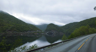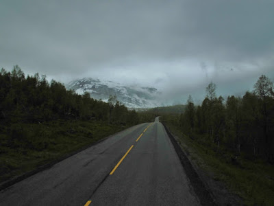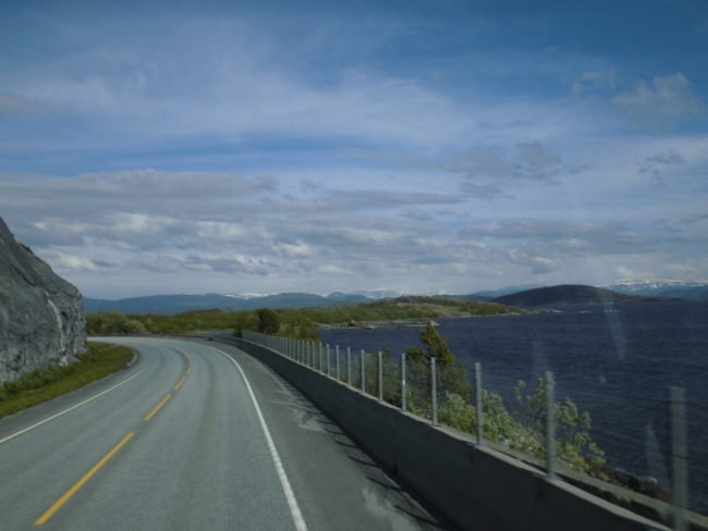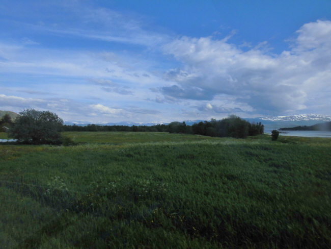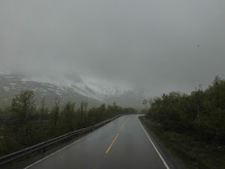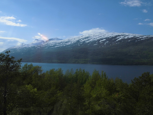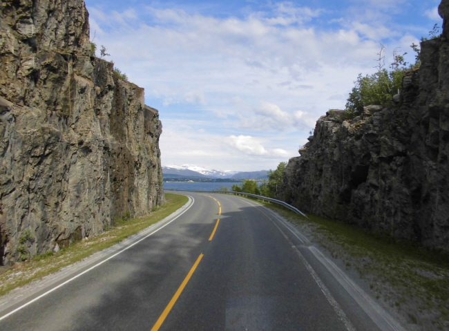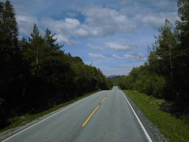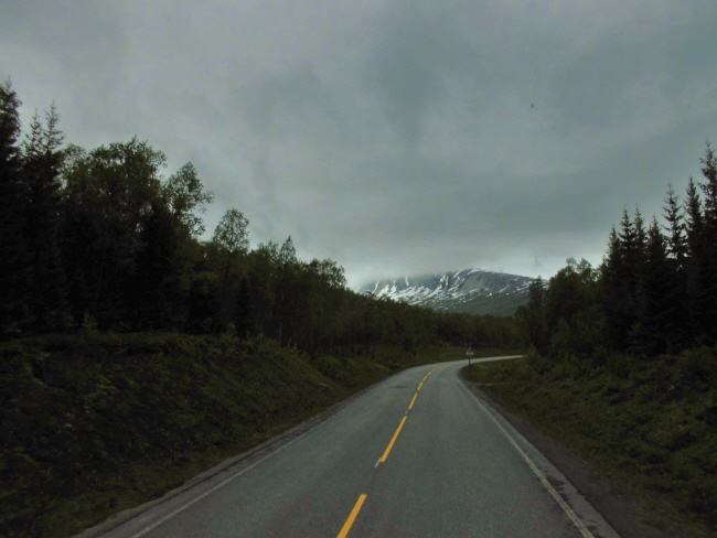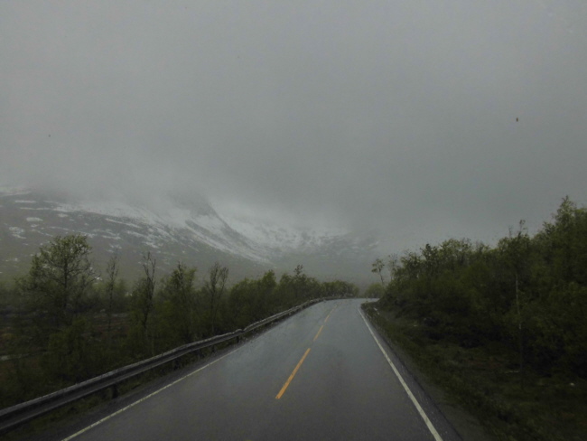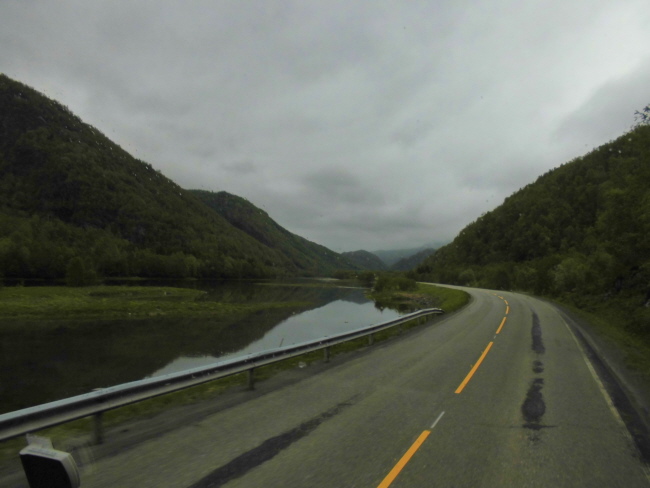 Wir kommen wieder ins Inland und fahren durch „Hamsuns Reich“. Klingt wie die Ländereien eines alten Wikingerkönigs. Ist aber „nur“ das Gebiet, in dem einer der norwegischen Nationalschriftsteller  – Knut Hamsun – aufgewachsen ist… Hier gibt es wieder Berge und – durch das hier ziemlich regnerische Wetter verstärkt – mystische Ausblicke.