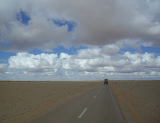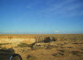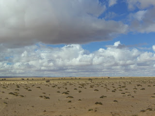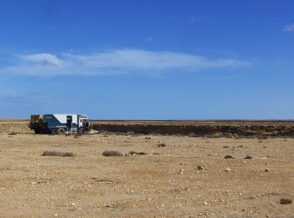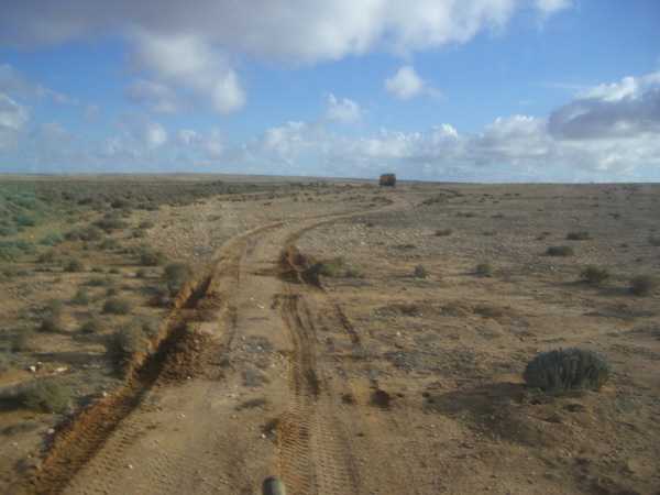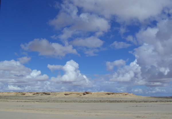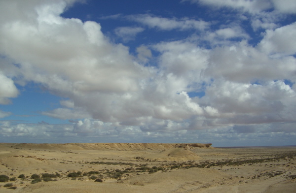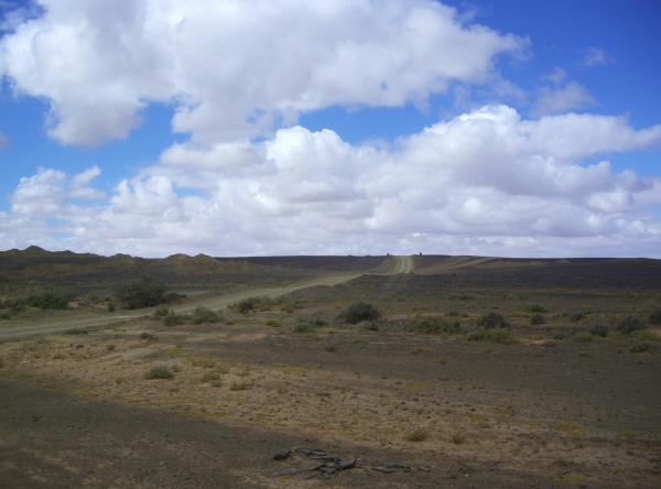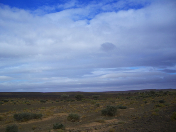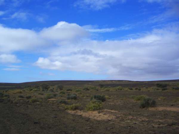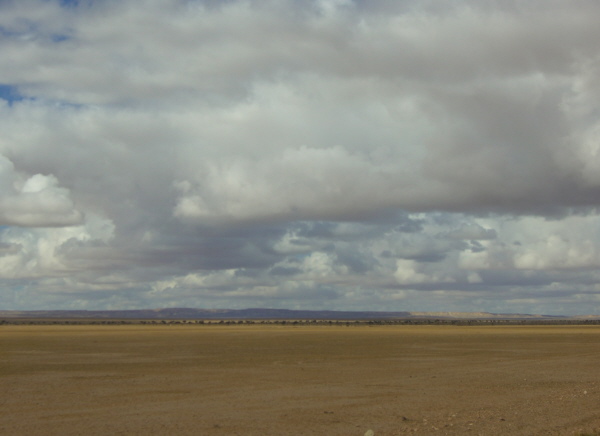 Die Wüste wird wieder flach und leer. Über viele Kilometer.