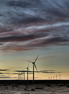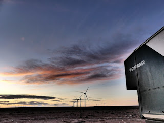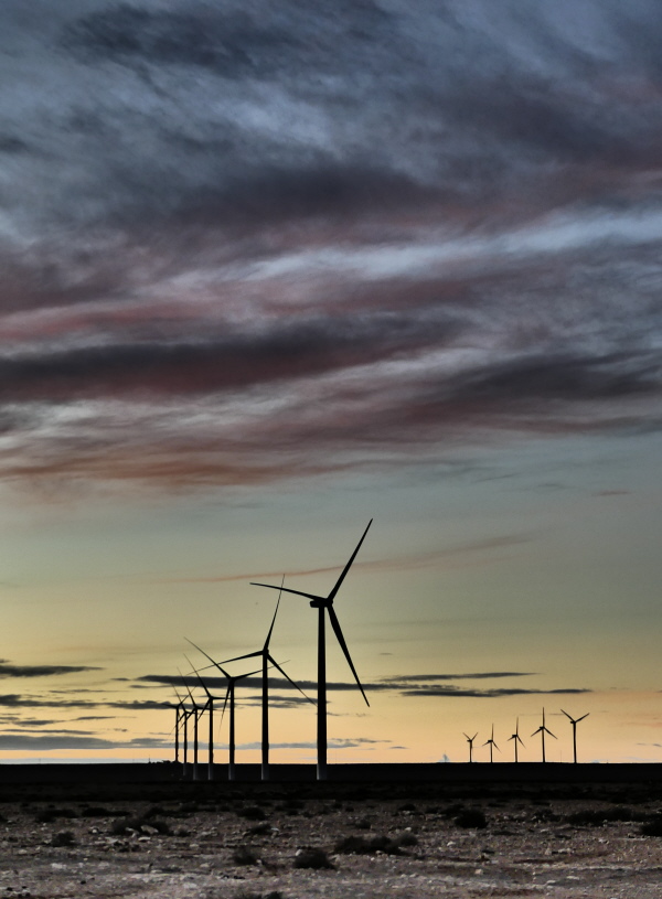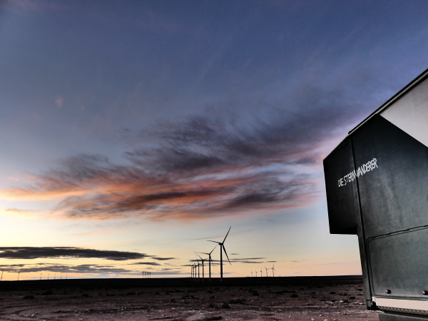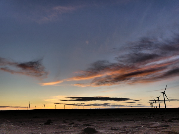 Während wir hier so schön beisammen sitzen, geht gegenüber hinter dem Windpark die Sonne unter. Auch ein sehr schöner Anblick und deshalb muss die Kamera natürlich mal wieder ausgetestet werden!