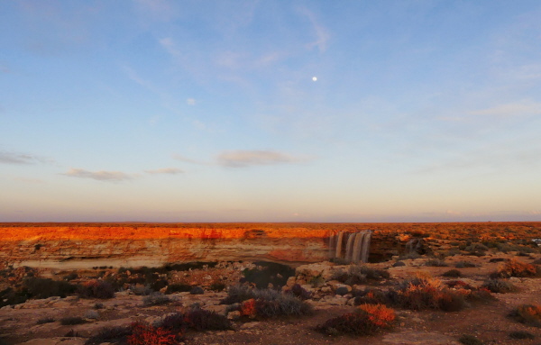 Im Abendlicht erscheint über den Wasserfällen der fast volle Mond – es ist ein wunderschöner Anblick, den wir sehr genießen!