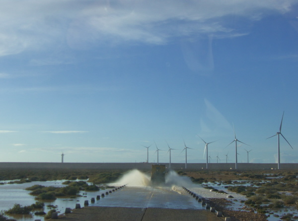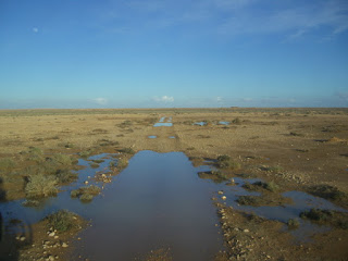 Eigentlich sind es ja nur große Pfützen links und rechts der Straße aber schön anzusehen sind sie auf jeden Fall. Und in der Wüste haben sie immerhin Seltenheitswert.