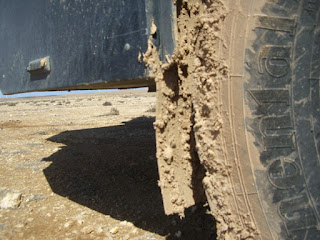 Wir haben auf dem Weg dorthin leider ein paar neue Furchen durch den Matsch ziehen müssen und die Reifen haben ein bisschen davon aufgesammelt…