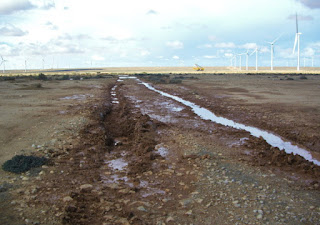 Direkt neben dem Matschweg sehen wir wieder mal eine der kleinen Überraschungen beim Off-Road-Fahren: ein Loch im Sandboden, groß genug einen jähen Stop und für viel, viel Arbeit, wenn man es zu spät sieht…