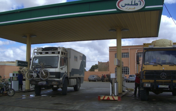 Jetzt fahren wir nach Norden – vorher wollen wir aber natürlich nochmal den günstigen West-Sahara-Sprit tanken. Wer weiß schon, wo wir die nächste Tankstelle finden…