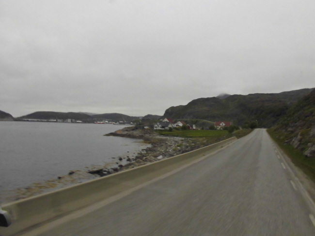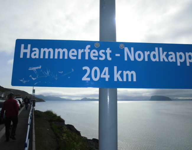 Bei Olderfjord biegen wir wieder rechts nach Westen ab und fahren in die Richtung, aus der wir vor zwei Tagen kamen. Schließlich wollen wir ja noch nach Hammerfest – immerhin nördlichste Stadt der Welt (70. Breitengrad, über 10.000 Einwohner, seit 1798 Stadtrecht). Jedenfalls laut Stadtmarketing.