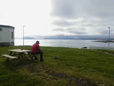 Wir trauen unseren Augen nicht: nachts um halb 12, bei 9 Grad Lufttemperatur und so gut wie Null Wind schiebt sich ein Surfer an unserem Fenster vorbei… Hier oben haben die Leute offensichtlich merkwürdige Hobbies.