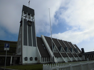 Wir sehen uns die Kirche von gestern noch einmal aus der Nähe an: ihre Form soll an die Trocknungsgestelle für die Dorsche erinnern. Der Fisch war hier schließlich die wichtigste Einkommensquelle der Menschen – bevor Öl und Gas ihn ablöste