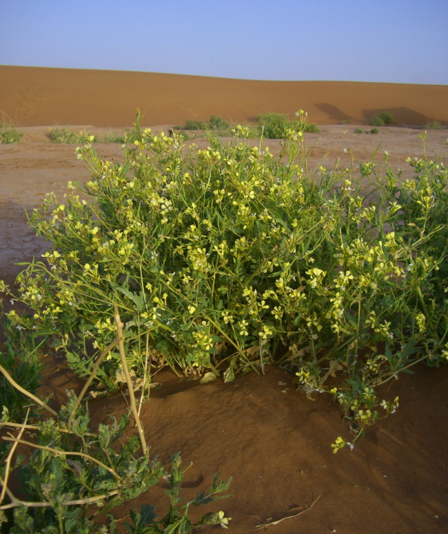 Ziemlich unvermittelt besteht die Landschaft jetzt aus Sand, durchzogen mit niedrigen, grünen Büschen.