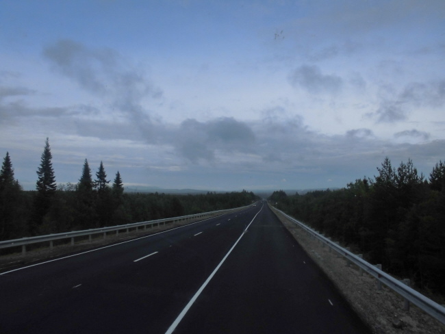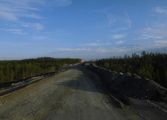 Nachdem wir die ganze Prozedur überstanden hatten, war es auch schon recht spät geworden und wir wollen nur noch die 55 km bis zur ersten Stadt – und damit der ersten Tankstelle – hinter uns bringen. Unser Spritvorrat neigt sich doch bedenklich dem Ende zu. Also auf nach Zapolyarny.