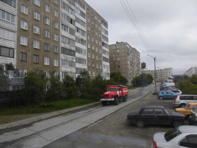 Irgendwann haben wir wieder etwas glatten Asphalt unter den Rädern und erreichen wir die Stadt Zapolyarny.