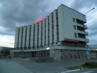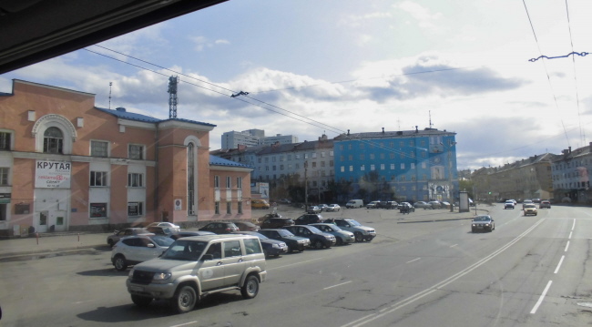 So erreichen wir nach weiteren 130 km Murmansk. Die 300.000 Einwohner Stadt liegt am Ufer eines sehr langen Fjordes des Arktischen Ozeans und war bis 1991 Sperrgebiet. Wir fahren erst einmal zur Orientierung durch die Straßen und finden breite Straßen mit teils schönen, teilweise aber auch sehr baufälligen Bauten. An einigen Stellen hat man sie durch moderne Häuser ersetzt. Die Straßen wirken belebt aber nicht überfüllt.