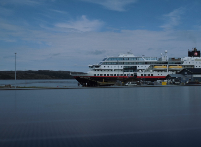 Direkt vor unserem Schlafplatz in Kirkenes taucht heute morgen ein Schiff der Hurtigrouten auf, die hier ihren letzten Hafen auf ihrer langen Norwegen-Route haben. Diese haben uns auf unserer Reise durch Norwegen immer wieder begleitet und nun heißt es Abschied nehmen, denn heute geht es über die Grenze nach Russland!