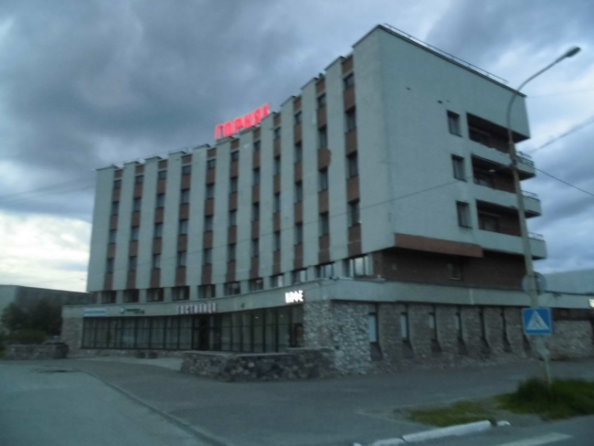 Nächster Stopp ist das 100 km entfernte Olenogorsk. 1946 als Armeestadt gegründet und immer noch eine Stadt für Soldaten und ihre Familien. An einigen Stellen sogar ganz nett, von der Größe her übersichtlich und mit einem Hotel ausgestattet.