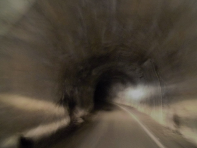 Sieht aus, wie moderne Kunst, ist aber nur einer der beiden Tunnel – nur vom Sternwanderer erleuchtet. Was man hier nicht braucht ist Gegenverkehr!