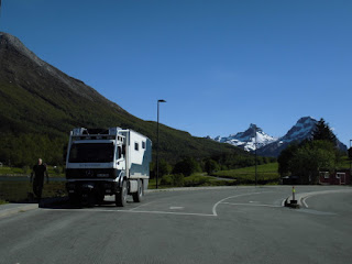 In Neverdal finden wir an einem Fjord mit den Bergen im Rücken einen Schlafplatz.