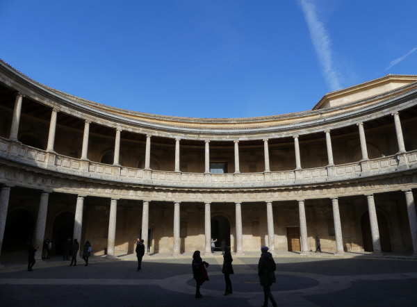 Ein wuchtiges Bauensemble ist der Palast Karls V. Der quadratische Grundriss mit 63 m Seitenlänge lässt das Gebäude im Gegensatz zu den Palästen der Mauren etwas plump erscheinen. Aufgelockert wird dieser Eindruck durch den Innenhof, der kreisförmig ist und vom zweistöckigen Rundbau des Palastinneren begrenzt wird.