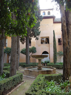 Andalusiens wohl bekannteste und berühmteste Sehenswürdigkeit ist ohne Zweifel die Alhambra in Granada. Dieser Komplex aus der maurischen Vergangenheit Andalusiens (711-1492) besteht aus Festung, Palästen und Gartenanlagen. Sie thront auf einem Hügel über der Stadt und bestimmt das Bild Granadas. Steht man abends auf dem gegenüberliegenden Hügel und sieht auf den Komplex der Alhambra, so leuchten die Mauern im Licht der untergehenden Sonne rötlich. Daher kommt auch der Name, denn Alhambra kommt vom arabischen Kala al-Hamra, rote Burg.