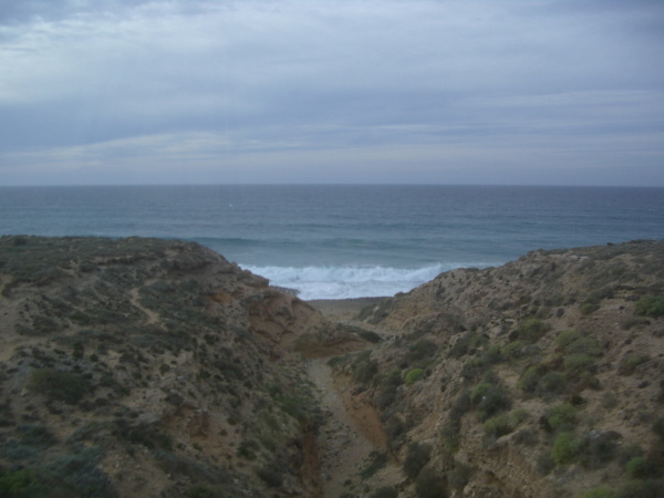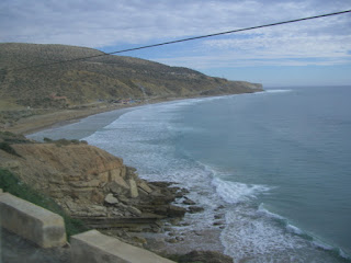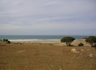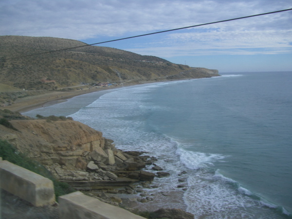 Wir sind jetzt ungefähr 40 km nördlich von Agadir und die ersten hohen Sanddünen sind am Atlantik zu sehen: