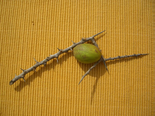 Wenn man die fiesen Stacheln sieht, die der Baum an jedem Ast und jedem Zweig trägt, kann man verstehen, dass die Früchte nicht gepflückt, sondern nur eingesammelt werden, wenn sie schon vom Baum gefallen sind