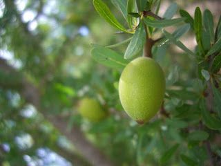 Der Platz ist von schönen alten Arganbäumen beschattet, deren helle Früchte zwischen den dunkelgrünen Blättern leuchten