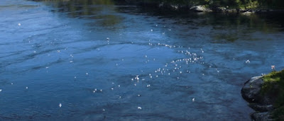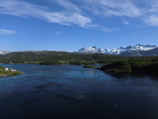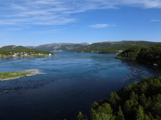 Kurz vor Bodø begegnen wir dem nördlichstem beeindruckenden Naturschauspiel der Küstenstraße Fv17: dem Saltstraumen. Es handelt sich hierbei um den stärksten Gezeitenstrom der Welt. Durch eine Meerenge rund 30 km südlich von Bodø strömen hierbei jeweils bei beginnender Flut bzw. einsetzender Ebbe solche Wassermassen, dass man denkt, man steht an einem schnell fließenden Fluss. 400 Milliarden Liter Wasser sind hier jedes Mal in Bewegung!