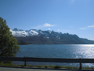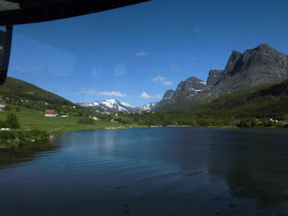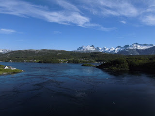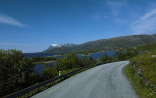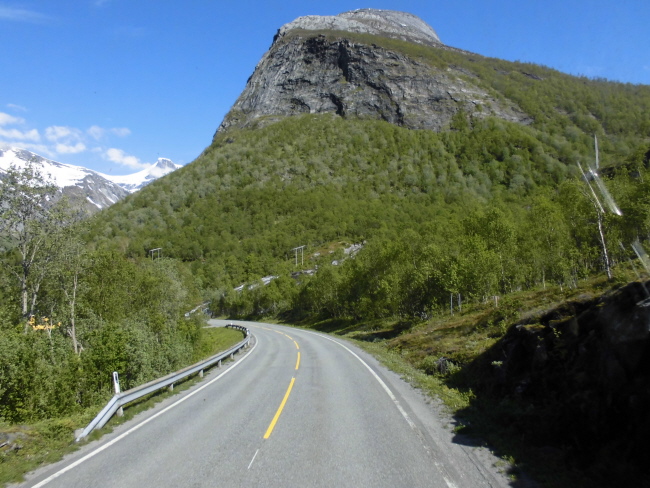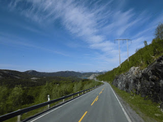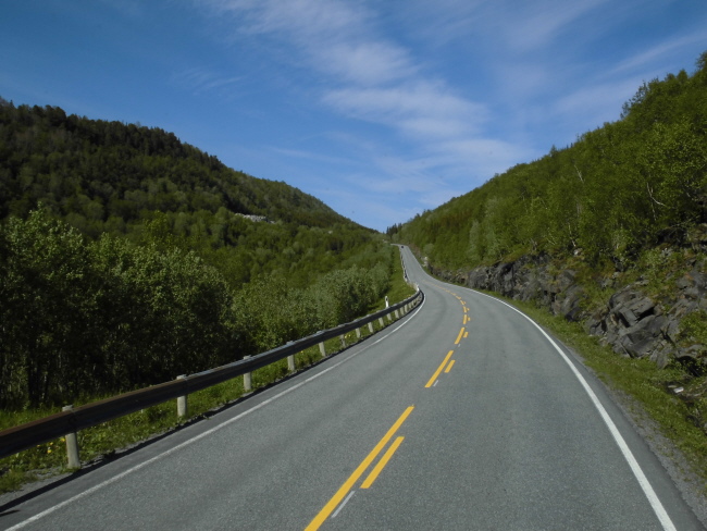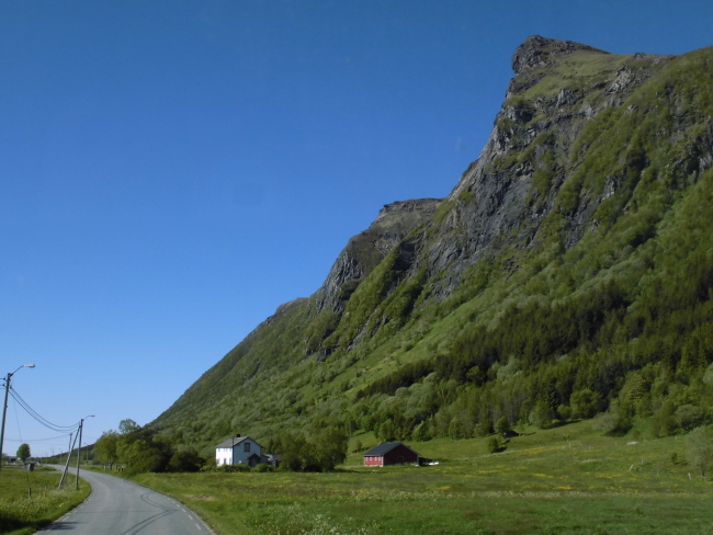 Nun haben wir einige Tage die Berge bestaunt und folgen jetzt dem letzten Teilstück des wunderschönen „Kystricksveien“ bis zu seinem Endpunkt nach Bodø. Die Strasse führt aus der Bergwelt hinaus. Schon nach kurzer Zeit werden die Berge niedriger und grüner und wir nähern uns dem Meer.