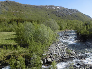 So wird aus dem uns bekannten längsten Tag des Jahres hier hoch im Norden ein nicht endender Tag mit 24 Stunden Sonnenschein. Die immerwährende Helligkeit ist natürlich ziemlich ungewohnt und so verschiebt sich der Schlaf-/Wachrhythmus doch ein wenig nach hinten. Die Norweger sind jedenfalls in dieser hellen Jahreszeit immer bis spät nachts sehr aktiv und auch wir gehen wir meist erst so gegen 2 Uhr ins Bett. Die Tiere draußen scheinen gar nicht zu schlafen. Lotta ist wohl auch ein bischen durcheinander und weiß nicht, wann genau sie denn nun schlafen gehen soll. Alles etwas anders hier…