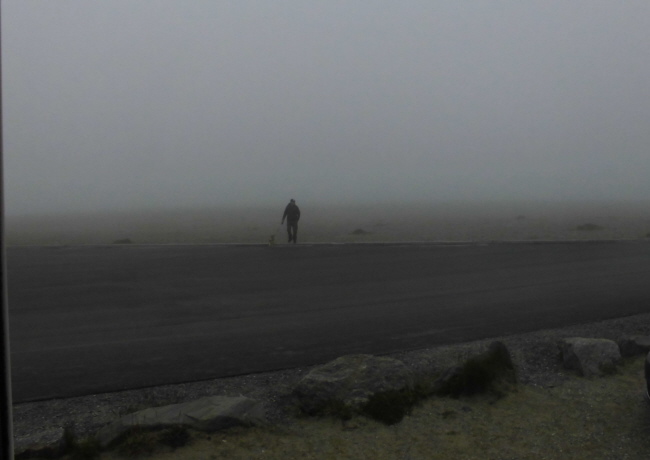 | Der Wanderer im Nebel mit seinem treuen Freund |