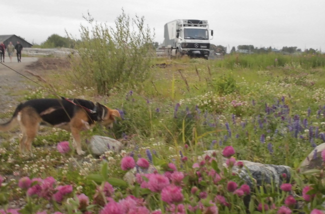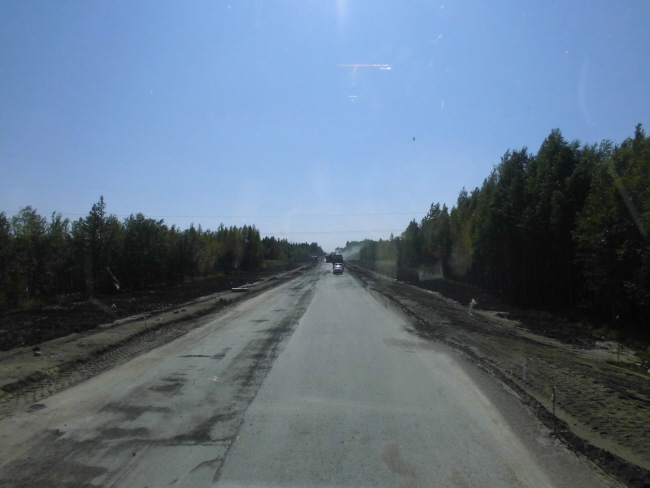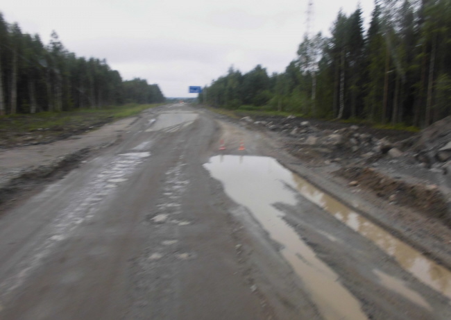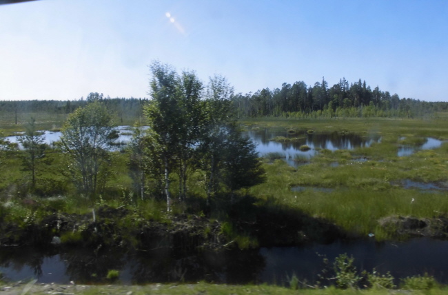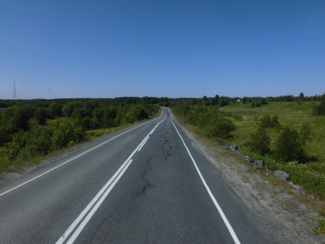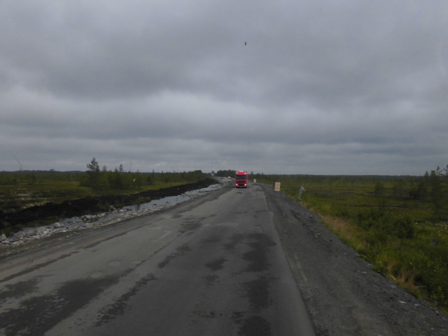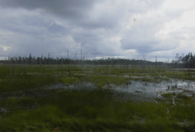 Unsere Fahrt führte uns durch die weite, sumpfige Landschaft Nordwestrusslands. Rechts und links der Strasse weite Wasser- und Sumpfflächen – Rastplätze waren leider rar gesät, daher waren die Fahrstrecken oft sehr lang. Die M18 ist jedenfalls sehr gut ausgebaut, so dass es ganz entspannt voranging.